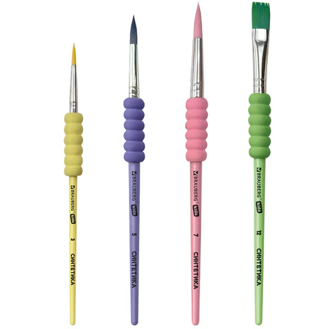 Кисти c силиконовой вставкой НАБОР 4шт. (синтетика кр. № 3,10; пл. № 10,15), блистер, BRAUBERG KIDS, 201097