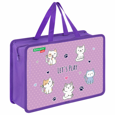 Папка на молнии с ручками BRAUBERG KIDS А4, 1 отделение, пластик, 100 мм, "Playing kittens", 272116