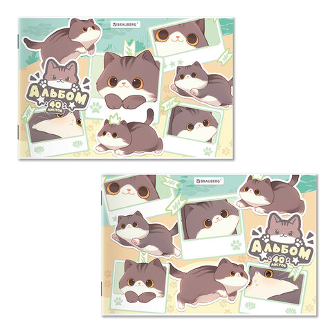РЕЗЕРВ Альбом д/рис. А4 40л., скоба, обложка картон, BRAUBERG CUTE CATS, 203х288мм, х, 107351
