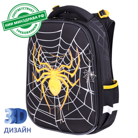 Ранец BRAUBERG PREMIUM, 2 отделения, с брелком, "Venomous spider", 3D панель, 38х29х16 см, 271355