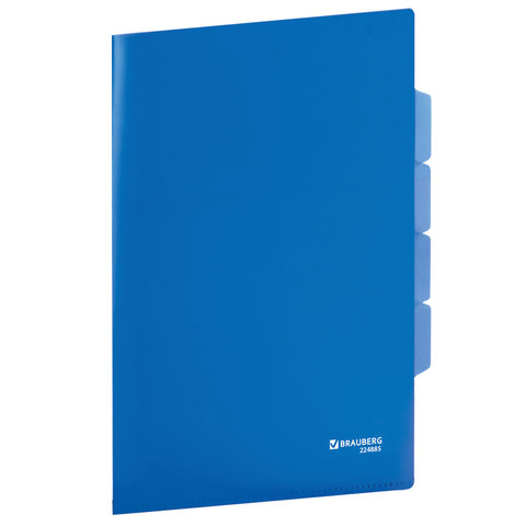 Папка-уголок с 3 отделениями, жесткая, BRAUBERG, синяя, 0,15 мм, 224885