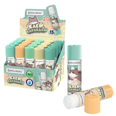 Клей-карандаш 15 г, кросс-серия МИЛЫЕ КОТЫ, ассорти, BRAUBERG, 273228
