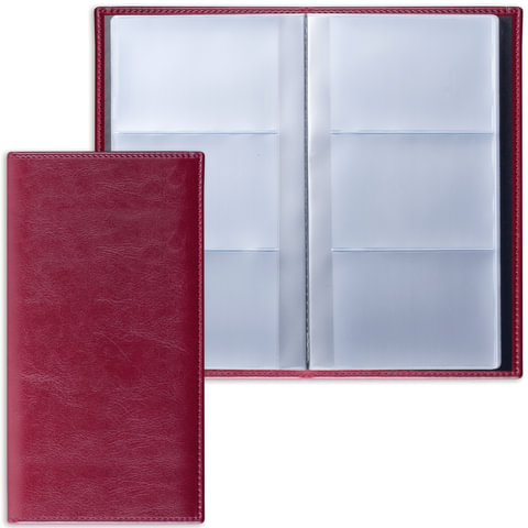 Визитница трехрядная BRAUBERG "Imperial", на 144 визитки, под гладкую кожу, бордовая, 231662