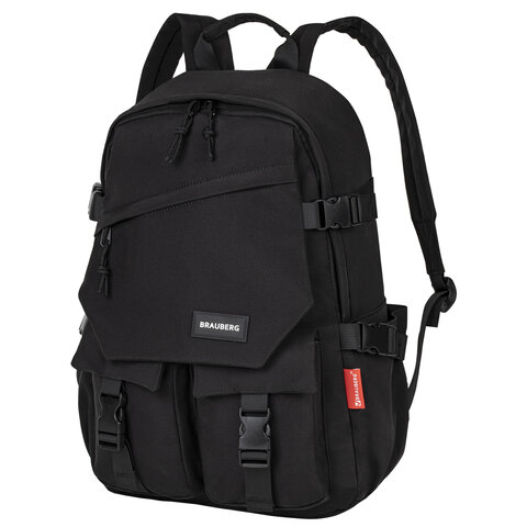 Рюкзак BRAUBERG URBAN универсальный с отделением для ноутбука, USB-порт, "Kinetic", черный, 46х31х18 см, 270798