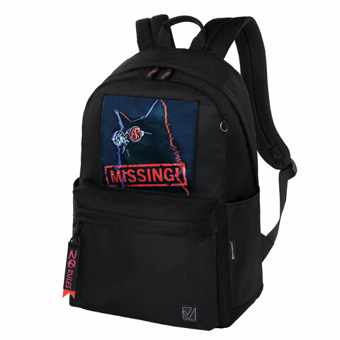 Рюкзак BRAUBERG FASHION CITY универсальный, карман-антивор, "Missing cat", черный, 44х31х16 см, 271673