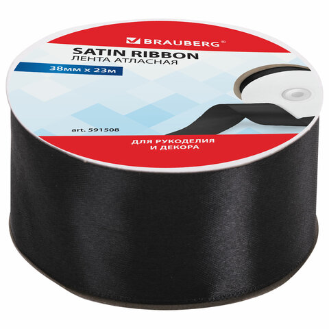 Лента атласная ширина 38 мм, длина 23 м, черная, BRAUBERG, 591508