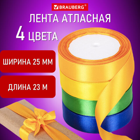 Лента атласная ширина 25 мм, набор №2 4 цвета по 23 м, BRAUBERG, 591502