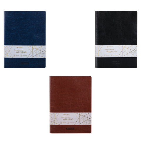Тетради 48 л. в клетку обложка гладкий кожзам, НАБОР 3 шт., сшивка, А5 (147х210 мм), BRAUBERG VIVA, 403892