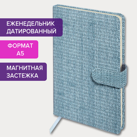 Еженедельник датированный 2024 А5 145х215 мм BRAUBERG "Augustus", под кожу, светло-серый, 115016