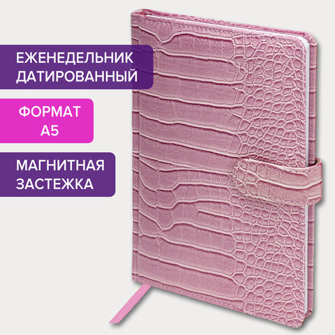 Еженедельник датированный 2024 А5 145х215 мм, BRAUBERG "Party", под кожу, розовый, 115031
