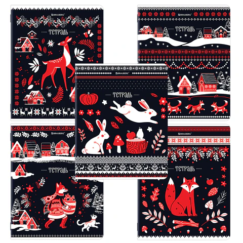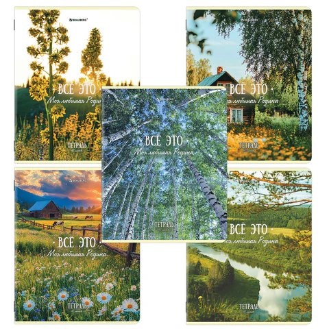 Тетрадь А5, 48 л., BRAUBERG, скоба, клетка, глянцевый лак, Русская природа (микс в спайке), 405651