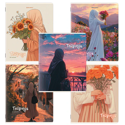 Тетрадь А5, 48 л., BRAUBERG, скоба, клетка, матовая ламинация, Восточная девушка (микс в спайке), 405647