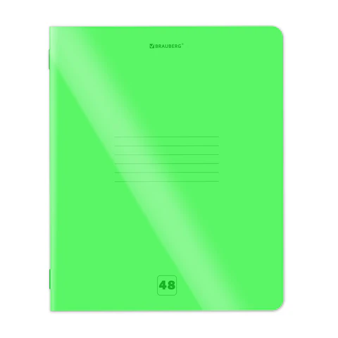 Тетрадь пластиковая обложка (НЕОН) А5 48 листов, скоба, клетка, BRAUBERG "Smart Cover", ЗЕЛЕНАЯ, 405038