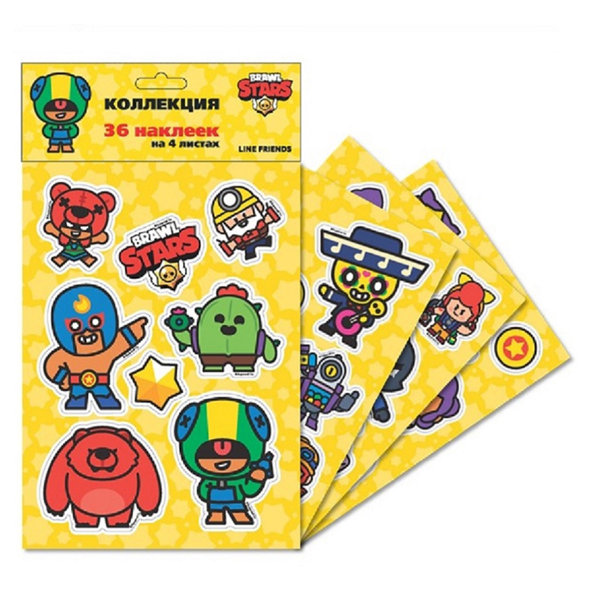 Наклейки Brawl Stars "Желтые", 36 наклеек, пакет