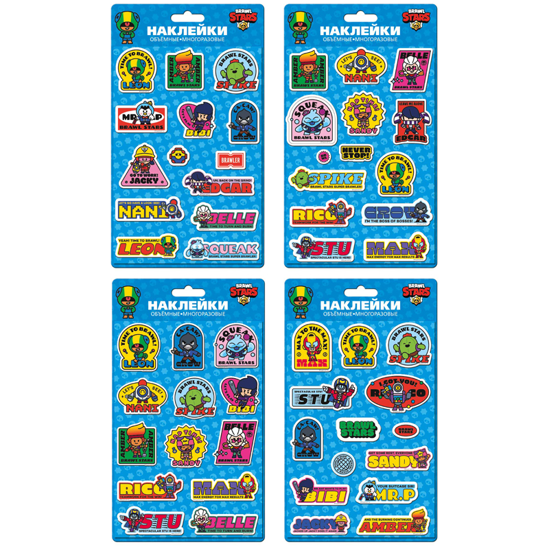 Наклейки Brawl Stars, объемные многоразовые, пакет, ассорти