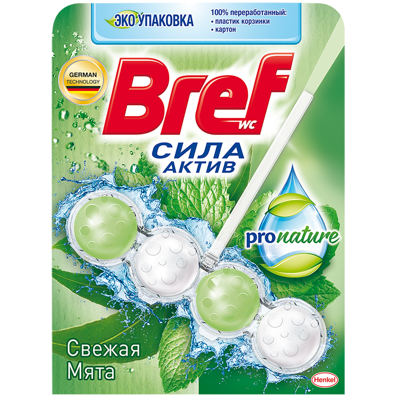Подвесной блок для унитаза Bref "Pro Nature", свежая мята, 50г, блистер