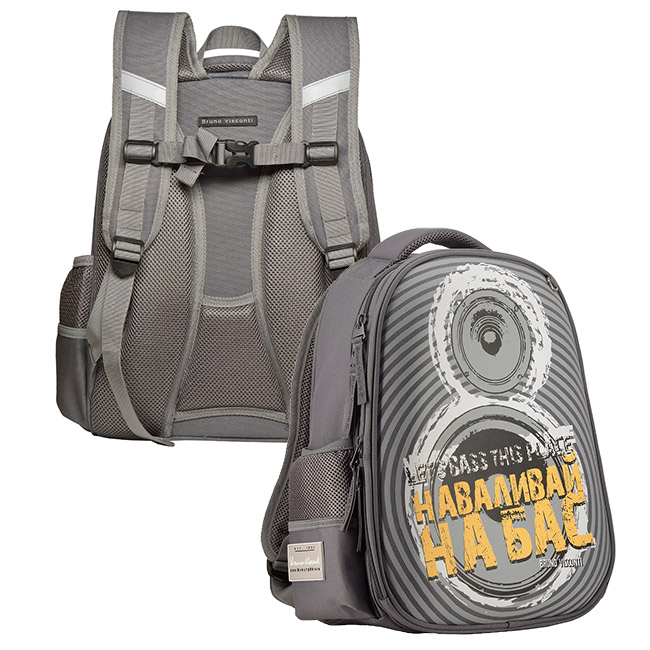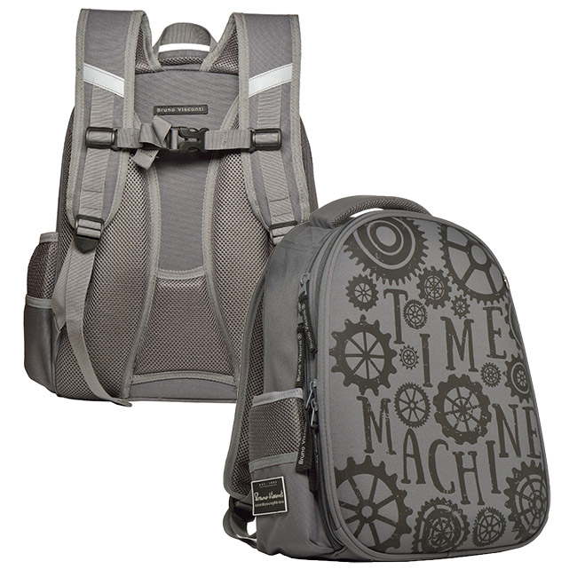 Рюкзак " Bruno Visconti " 30*38*20см Машина времени серый, 2 основных отделения: первое отделение содержит органайзер с молнией и карман-сеточку, второе отделение состоит из трех частей с двумя разделителями с фиксирующим ремнем и дополнено карманом на мо