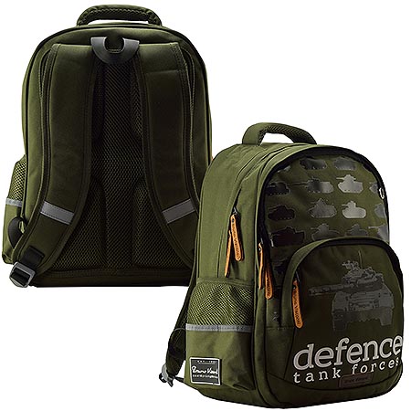 Рюкзак " Bruno Visconti " 30*40*19см Танчики, темно-зеленый, 2 основных отделения и большой фронтальный карман на молнии, а также 2 боковых кармана на резинке. Одно отделение содержит органайзер с молнией, боковой карман и карман на молнии, а также дополн