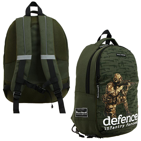 Рюкзак " Bruno Visconti " 31*42*14см Defence Forces. Пехота, зеленый, 1 основное отделение и один фронтальный карман на молнии содержит удобный органайзер с молнией, эргономичная вентилируемая спинка, регулируемые лямки, светоотражающие элементы, 640гр
