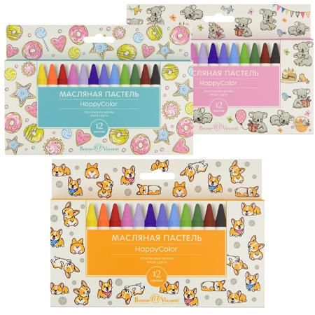 Пастель " Bruno Visconti " Happycolor масляная 12цв трехгранная, коробка-пенал с пластиковым ложементом