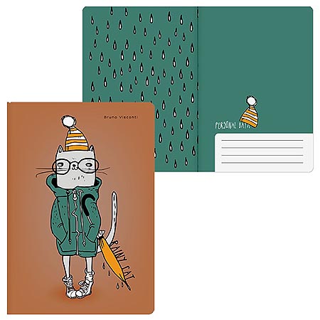 Тетрадь Евро (147*210мм) 40л " Bruno Visconti " Rainy Cat клетка, бежевый внутренний блок, 70г/м2, сшивка, обложка- мелованный картон, матовая ламинация Soft Touch, вторая обложка с титульным листом, плотность обложки- 190г/м2, скругленные углы
