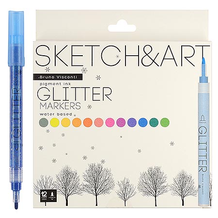 Набор маркеров для скетчинга " Bruno Visconti " 12цв Sketch&Art глиттерные, 3,0мм, пулевидный, круглый корпус, картонная упаковка, европодвес
