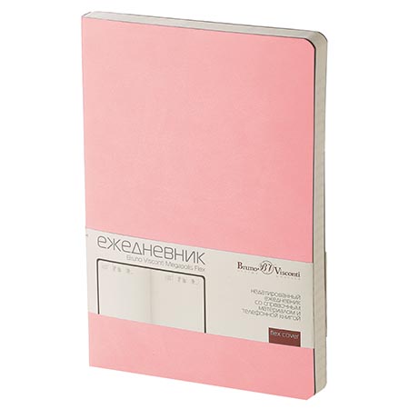 Ежедневник недатированный А5 142*214мм искусственная кожа " Bruno Visconti " 160л Megapolis Velvet темно-розовый, на резинке, линия, тонированный офсет 70 г/м2, печать в 1 краску, ляссе, скругленные углы, карман для бумаг, справочная информация