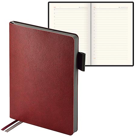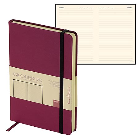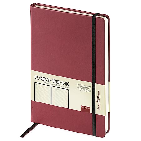 Ежедневник недатированный А5 145*207мм искусственная кожа " Bruno Visconti " 136л Boston бордовый, линия, тонированный блок 70г/м2, печать в 2 краски, 2 ляссе, цветной срез, скругленные углы, справочная информация, петля для ручки, подходит под горячее ти