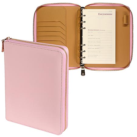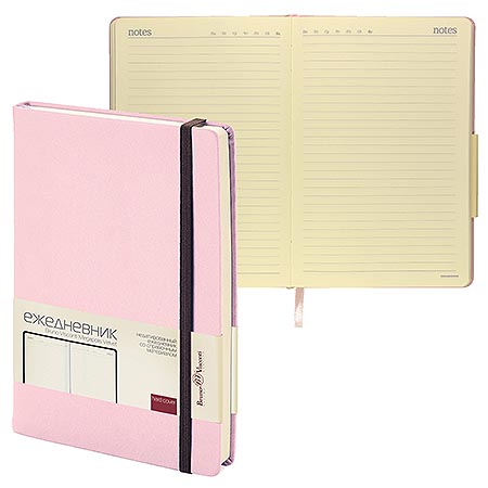 Ежедневник недатированный А5 140*190мм иск кожа " Bruno Visconti " 100л Riviera. Zefir, розовый, на молнии, линия, тонированный блок 70г/м2, печать в 2 краски