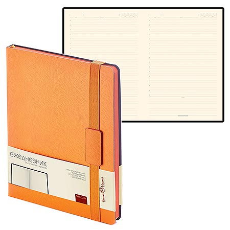 Ежедневник недатированный B5 173*242мм искусственная кожа " Bruno Visconti " 136л Leggenda Оранжевый, линия, тонированный блок 70г/м2, печать в 2 краски, ляссе, скругленные углы, фиксирующая резинка, справочная информация