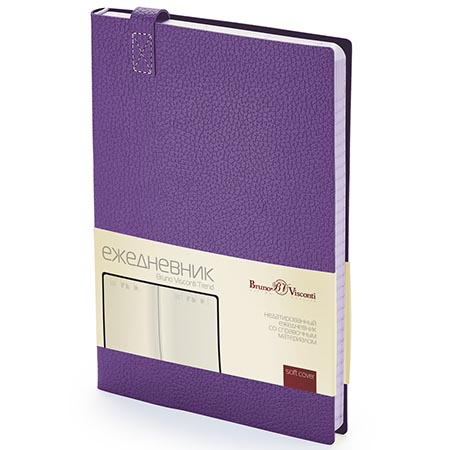 Ежедневник недатированный А5 147*214мм искусственная кожа " Bruno Visconti " 136л Trend фиолетовый, линия, ляссе, бежевый блок 70г/м2, печать в 2 краски, скругленные углы, телефонная книга