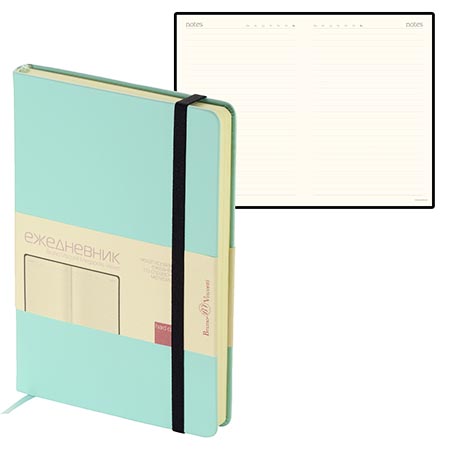 Ежедневник недатированный А5 142*214мм искусственная кожа " Bruno Visconti " 160л Megapolis Velvet зефирный мятный, на резинке, линия, тонированный офсет 70 г/м2, печать в 1 краску, ляссе, скругленные углы, карман для бумаг, справочная информация