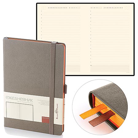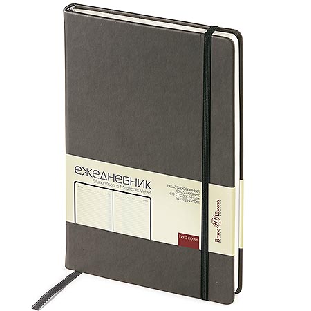 Ежедневник недатированный А5 114*184мм искусственная кожа " Bruno Visconti " 192л Sienna Серый, клетка/линейка, белый офсет 70г/м2, печать в 2 краски, подходит под горячее тиснение, фольгу