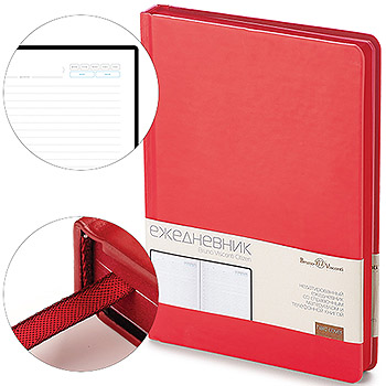 Ежедневник недатированный А5+ 142*206мм искусственная кожа " Bruno Visconti " 160л Citizen Красный, поролон, линия, белый офсет 70г/м2, печать в 1 краску, ляссе, скруглые углы, подходит под тиснение блинтовое, фольгу, подходит под тиснение блинтовое, фоль