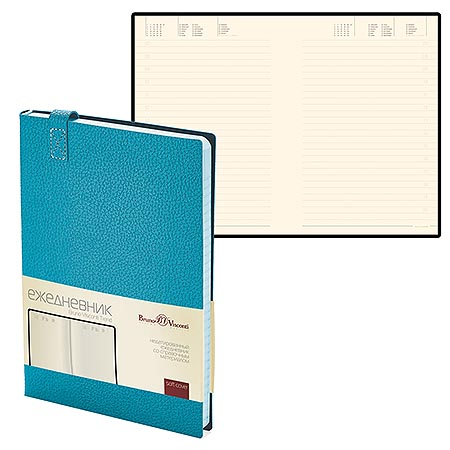 Ежедневник недатированный А5 147*214мм искусственная кожа " Bruno Visconti " 136л Trend бирюзовый, линия, тонированный блок 70г/м2, печать в 2 краски, ляссе, скругленные углы