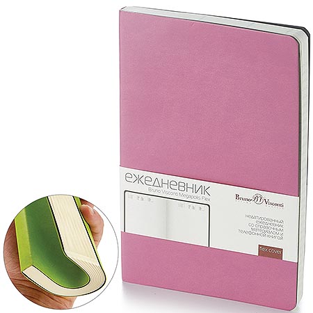 Ежедневник недатированный А5 140*210мм искусственная кожа " Bruno Visconti " 136л Megapolis Flex Розовый, линия, тонированный блок 70г/м2, печать в 1 краску, скругленные углы, справочная информация