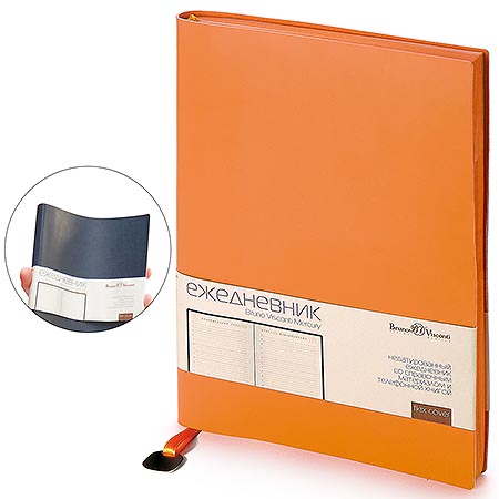 Ежедневник недатированный А5 145*213мм искусственная кожа " Bruno Visconti " 136л Mercury Оранжевый, линия, белый офсет 70г/м2, печать в 2 краски, ляссе, скругленные углы, подходит под горячее тиснение, фольгу