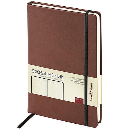 Ежедневник недатированный А5 140*208мм искусственная кожа " Bruno Visconti " 136л Palermo коричневый, линия, тонированный блок 70г/м2, печать в 2 краски, скругленные углы, фиксирующая резинка, справочная информация, карман для бумаг, подходит под горячее