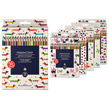 Карандаши " Bruno Visconti " Happycolor 36цв 6 видов (без возможности выбора дизайна), трехгранные, деревянные, картонная упаковка, европодвес