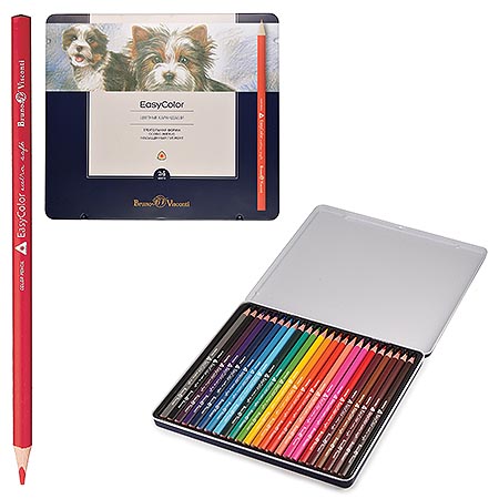 Карандаши " Bruno Visconti " Easycolor 24цв трехгранные, деревянные, металлическая коробка с пластиковым ложементом