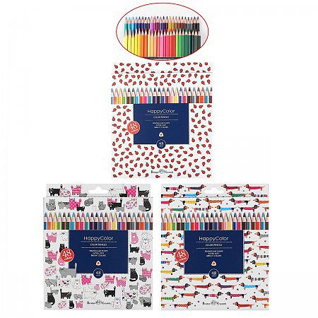 Карандаши " Bruno Visconti " Happycolor 48цв 3 вида (без возможности выбора дизайна), трехгранные, деревянные, картонная упаковка