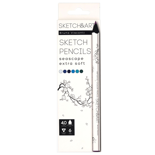 Карандаши " Bruno Visconti " Sketch&Art Морской пейзаж 6цв утолщенные, трехгранные, деревянные, картонная упаковка, европодвес
