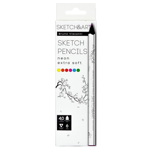 Карандаши " Bruno Visconti " Sketch&Art Неоновые 6цв утолщенные, трехгранные, деревянные, картонная упаковка, европодвес
