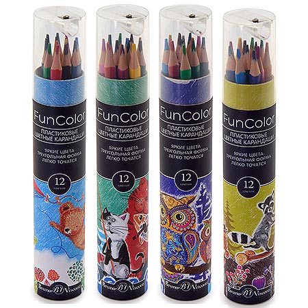 Карандаши " Bruno Visconti " Funcolor 12цв 4 вида (без возможности выбора дизайна), трехгранные, пластиковые, картонная туба