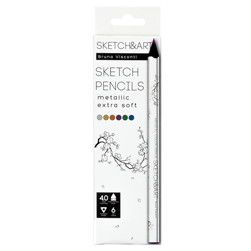 Карандаши " Bruno Visconti " Sketch&Art Металлик 6цв утолщенные, трехгранные, деревянные, картонная упаковка, европодвес