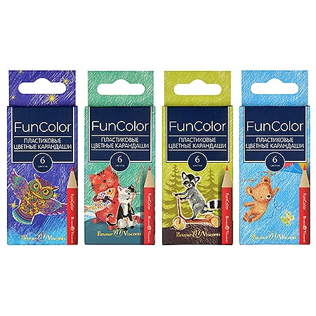 Карандаши " Bruno Visconti " Funcolor 6цв 4 вида (без возможности выбора дизайна), трехгранные, пластиковые, укороченные, картонная упаковка, европодвес