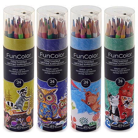 Карандаши " Bruno Visconti " Funcolor 24цв 4 вида (без возможности выбора дизайна), трехгранные, пластиковые, картонная туба