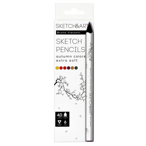 Карандаши " Bruno Visconti " Sketch&Art Осенний пейзаж 6цв утолщенные, трехгранные, деревянные, картонная упаковка, европодвес
