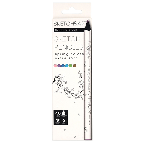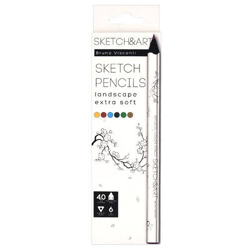 Карандаши " Bruno Visconti " Sketch&Art Весенний пейзаж 6цв утолщенные, трехгранные, деревянные, картонная упаковка, европодвес