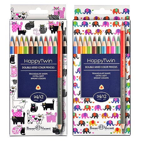 Карандаши " Bruno Visconti " Twincolor happy 24цв 12шт 4 вида (без возможности выбора дизайна), двухсторонние, трехгранные, деревянные, картонная упаковка, европодвес